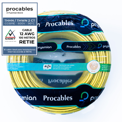 CABLE THHN-2 TC 7H COBRE PROCABLES 12 AMARILLO X 100 METROS – PROCABLES 31353081006R
