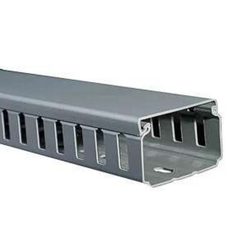 La canaleta ranurada de 2 metros, con dimensiones de 60 mm x 40 mm, diseñada especialmente para alambrar tableros de control de manera eficiente y ordenada.