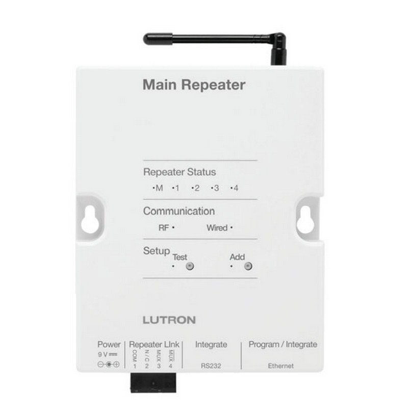 - El control principal para RadioRa2 un sistema completo de 200 dispositivos de RadioRa2, soporta dos RRMAINREP, cada uno le permite agregar 100 dipositivos y 4 repetidores de señal RRAUXREP..