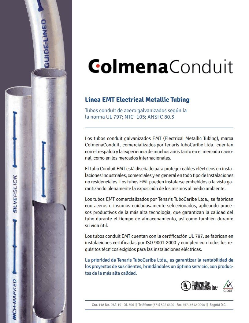 Ficha Técnica 2023 Colmena Conduit Línea Tubos Galvanizados EMT