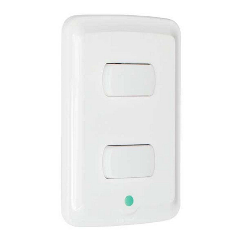 El Interruptor Ambia RF Conmutable Doble en color blanco (BL) permite controlar dos circuitos de iluminación de manera independiente desde dos ubicaciones diferentes, utilizando tecnología de radiofrecuencia (RF) para un control sin cables.