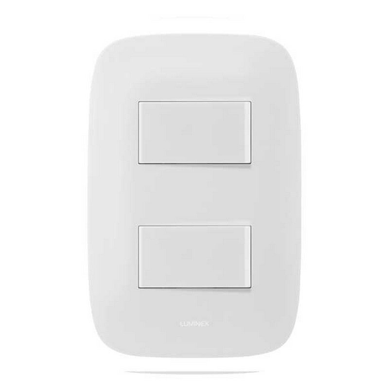 Interruptor conmutable doble de la línea Galica-2, en color blanco. Permite controlar dos circuitos eléctricos desde dos puntos diferentes, proporcionando comodidad y flexibilidad en la iluminación.