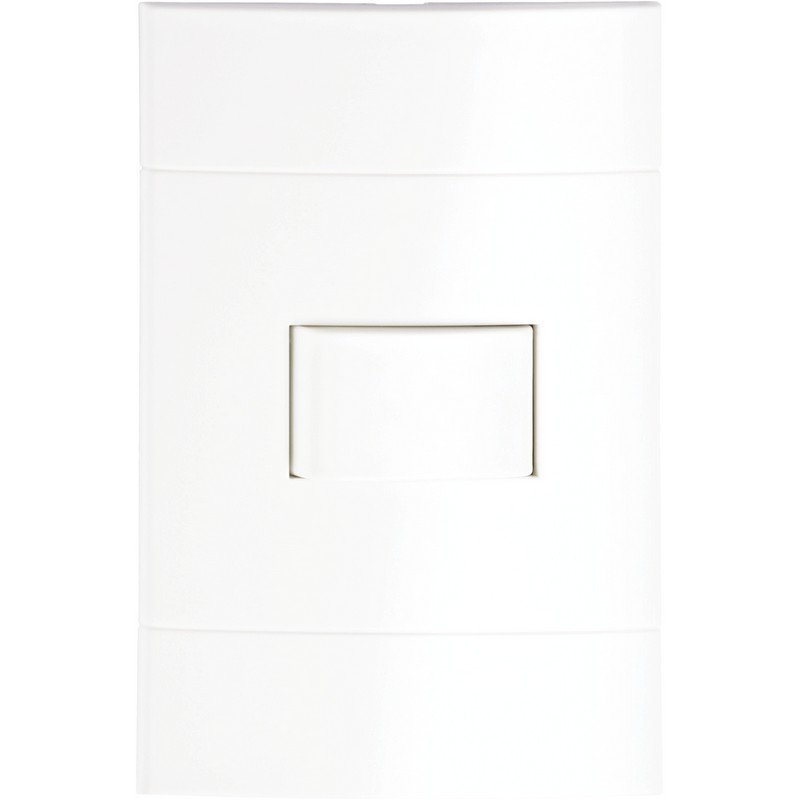 Cuenta con una corriente nominal de 10 A y una tensión asignada de empleo de 250 V AC. Fabricado en material PS (poliestireno), presenta unas dimensiones de 85 mm de anchura, 9 mm de altura, 123 mm de longitud, un fondo empotrado de 24,9 mm y una profundidad total de 33,9 mm. Las conexiones se realizan a través de terminales en pilar, admitiendo un calibre AWG 8 y una sección de cable de 6 mm². El dispositivo se fija a presión y está compuesto por 3 módulos, además de cumplir con la norma ABNT NBR NM 60.669. INTERRUPTOR LUNARE SENCILLO
