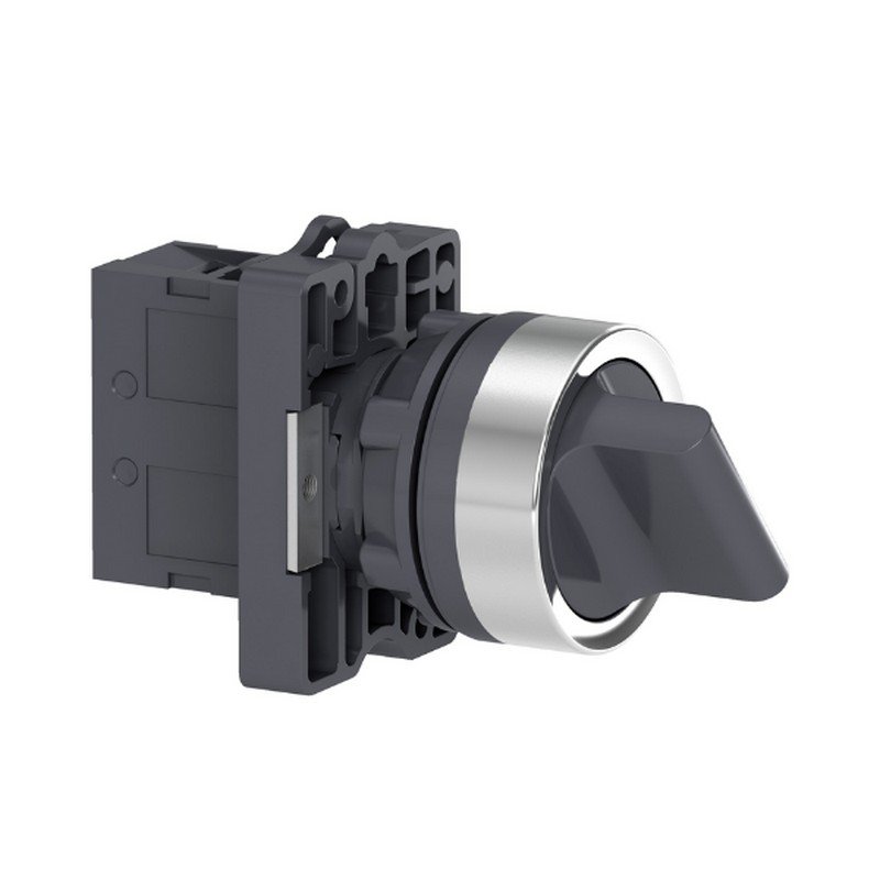 Tiene 1 contacto NA con funcionamiento de ruptura lenta. Éste es un conmutador de plástico con un marco de diseño de anillo de aspecto metálico. Es un producto con clasificación IP54 e incluye las certificaciones CE, CCC y EAC conformes a las normas GB 14048. 1, IEC 60947-1, GB 14048. 5 e IEC 60947-5-1 . Se instala fácilmente en un panel de 22 mm de diámetro estándar y se conecta a circuitos de control con conexiones de borne atornillado. Es resistente al impacto, al polvo, al agua y a las vibraciones, por lo que resulta idóneo para entornos hostiles.