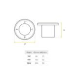 Luminaria de piso LED de 9W con luz blanca cálida (3000K), clasificación IP65, diseñada para instalación incrustada en exteriores, ofreciendo un diseño moderno y eficiencia energética.