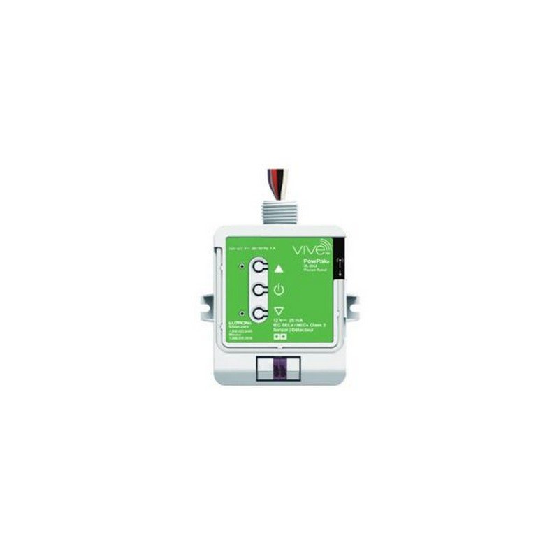 El módulo atenuador Vive PowPak con control de 120/277 V, 8 A, 0-10 V (INSTALACIÓN DE CLASE 2), es un control de radiofrecuencia (RF) que opera balastos fluorescentes de 0–10 V- controlados o controladores LED basado en la entrada de controles remotos Pico y sensores Radio Powr Savr.