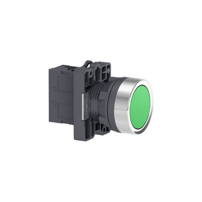 Pulsador redondo verde Ø 22mm, retorno de resorte, 1 NA