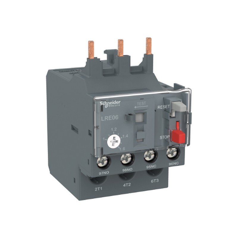 El relé LRE es un relé de sobrecarga térmica diferencial para utilizarlo con fusibles o disyuntores magnéticos GV2 L y GV3 L. Su rango de ajuste térmico es de 5,5-8A 50/60Hz y la clase de disparo es de 10A conforme a IEC 60947-4-1.