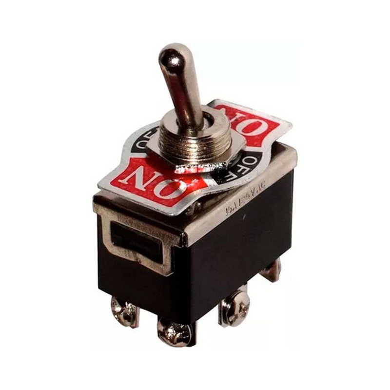 Este interruptor permite cambiar entre diferentes estados de conexión. Puede tener posiciones como ON-OFF o cambiar entre diferentes circuitos, dependiendo de la configuración específica.
