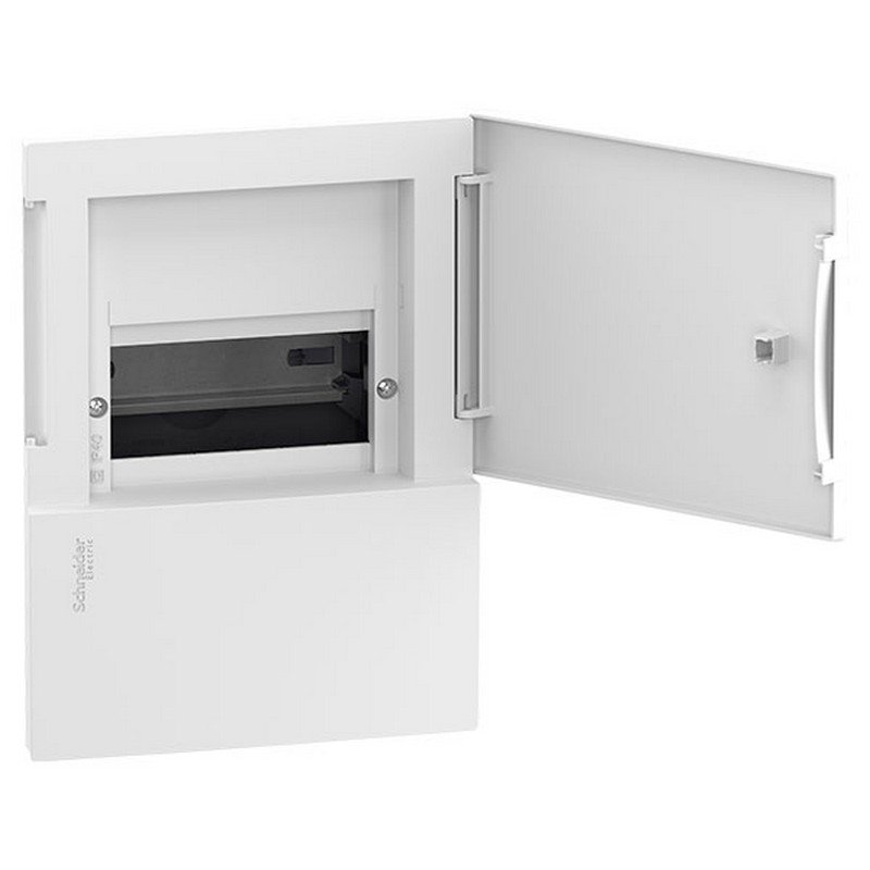 TABLERO MINIPRAG 63A 400V 1F 6C – SCHNEIDER Este gabinete Resi9 MP es un gabinete modular empotrado. Este gabinete se compone de 1 fila de 6 módulos de 18mm. Puede alojar todo tipo de tableros modulares. El grado de protección IP es IP40. Está provista de una puerta translúcida. El color de la cara frontal es blanco (RAL 9003).