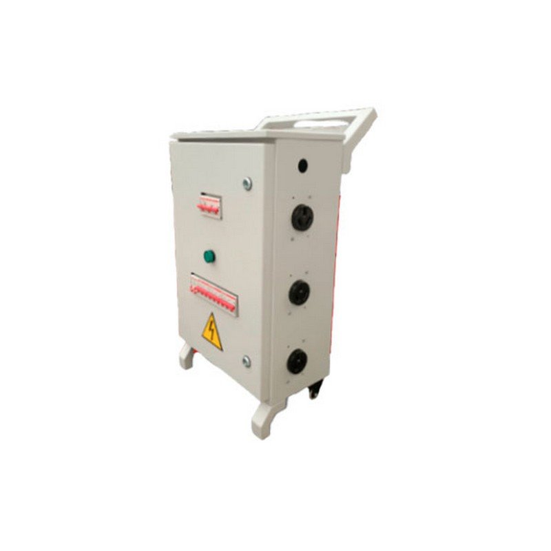 Tablero provisioal obra movil cuenta con una estructura robusta montada sobre ruedas para un desplazamiento sencillo y seguro, proporciona versatilidad para conectar diferentes tipos de dispositivos y herramientas eléctricas. Su acabado con pintura electrostática asegura una resistencia superior a la corrosión y un aspecto profesional. El equipo permite la entrada de cables tanto por el lateral como por la parte inferior, brindando flexibilidad en la instalación y facilitando su integración en diversos entornos eléctricos.