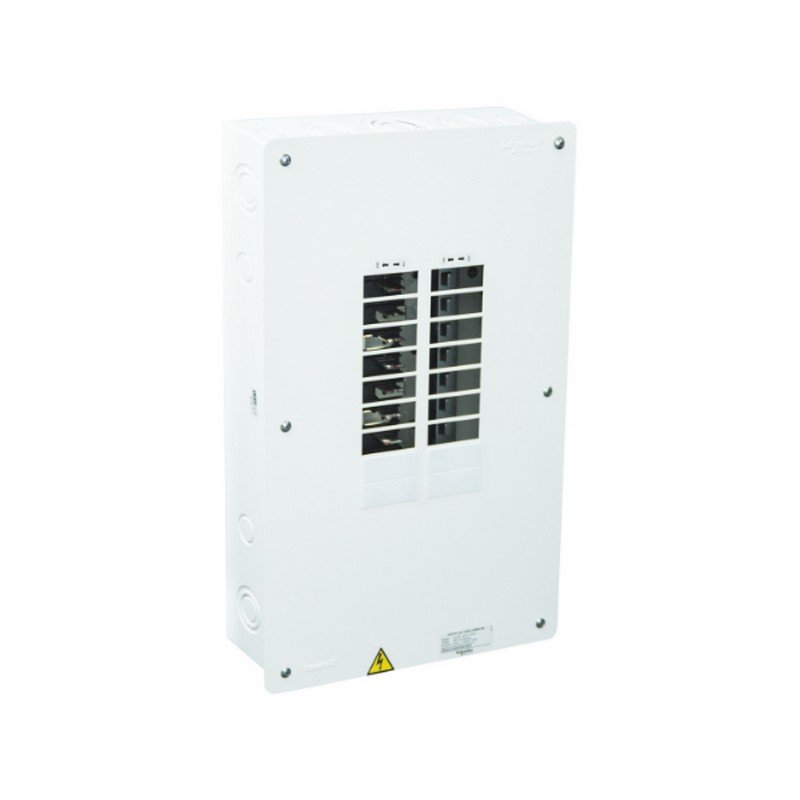 Este producto Square D es un centro de carga trifásico de 18 vías, hasta 200 A. Este centro de carga de montaje empotrado o de superficie incluye un dispositivo de corriente residual (RCD) como bloques de terminales de entrada, tierra y neutro. El rango de protección de Interruptor automático y limitador de sobretensiones Square D es compatible con el centro de carga. Las dimensiones son (An. ) 280mm x (Alt. ) 481mm x (Prof. ) 89mm. El color de la carcasa es blanco (RAL 9003) pintado con polvo epoxi-poliéster. Está fabricado en acero laminado en frío fosfato de 1,2 mm de espesor. El grado de protección es IP2XC. Este centro de carga cumple con la norma IEC 60439-3. Está diseñado para su instalación en edificios residenciales y comerciales pequeños.