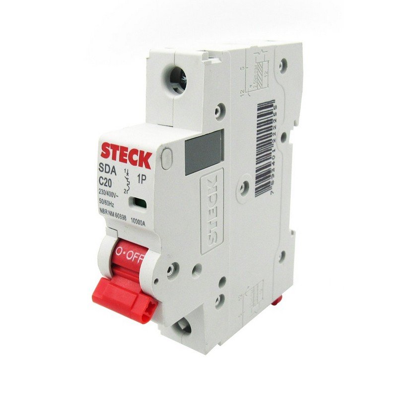 Interruptor taco Riel STECK, Monopolar de 6A, 6kA y 240V, protege tanto los equipos conectados como las instalaciones eléctricas, asegurando un funcionamiento seguro y eficiente.